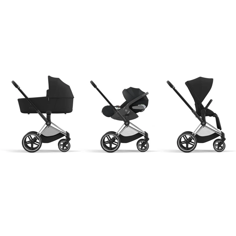 Avec le système Priam, Cybex offre un système 3-en-1 entièrement modulable, coordonné et complet. Personnalisable, vous choisissez tout d’abord votre châssis : Rose Gold, Noir Matt, Chromé/noir ou Chromé/marron puis l’habillage du siège de la poussette parmi une multitude de coloris !