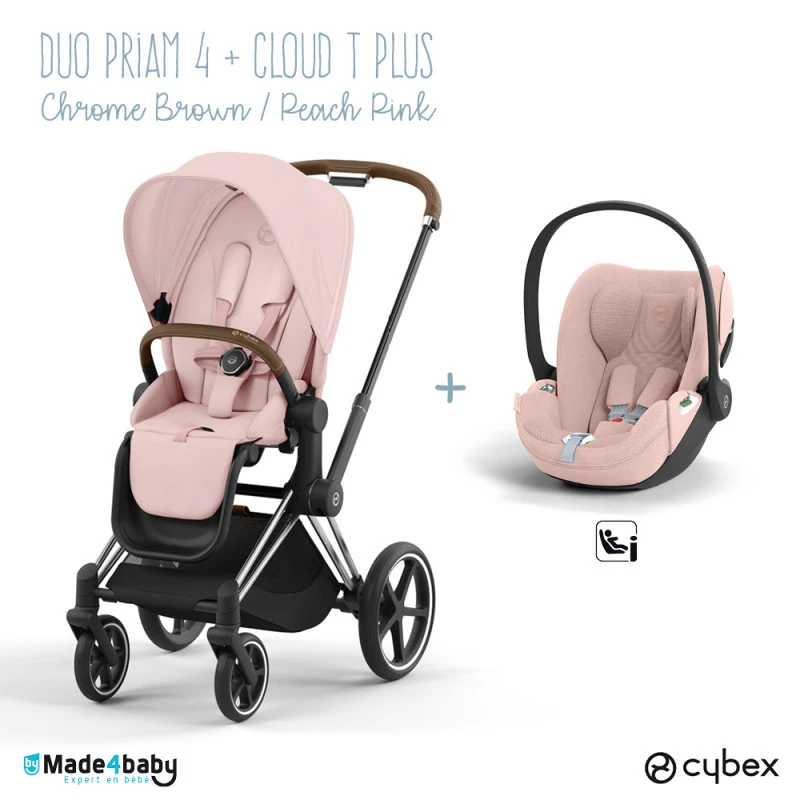 Nous vous proposons cet ensemble Cybex duo composé du châssis Priam, de l’armature d’assise, de l’habillage du siège et du siège auto Cloud T Plus, un véhicule 5 étoiles pour bébé !