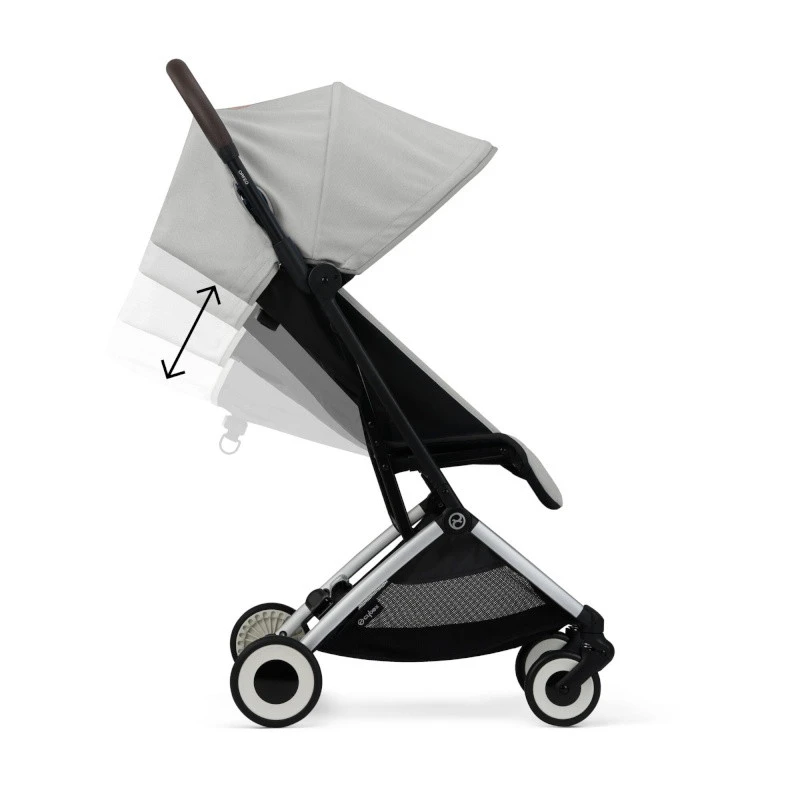 Être compact ne veut pas dire être inconfortable ! Bien au contraire, la poussette Orfeo de Cybex dispose d’une assise spacieuse, avec un dossier respirant et inclinable jusqu’à la position allongée ; son marchepied se redresse également et offre ainsi une position de repos agréable pour votre jeune enfant. Quant à la grande capote extensible, anti-UV UPF50+, elle le protège du soleil comme du vent.