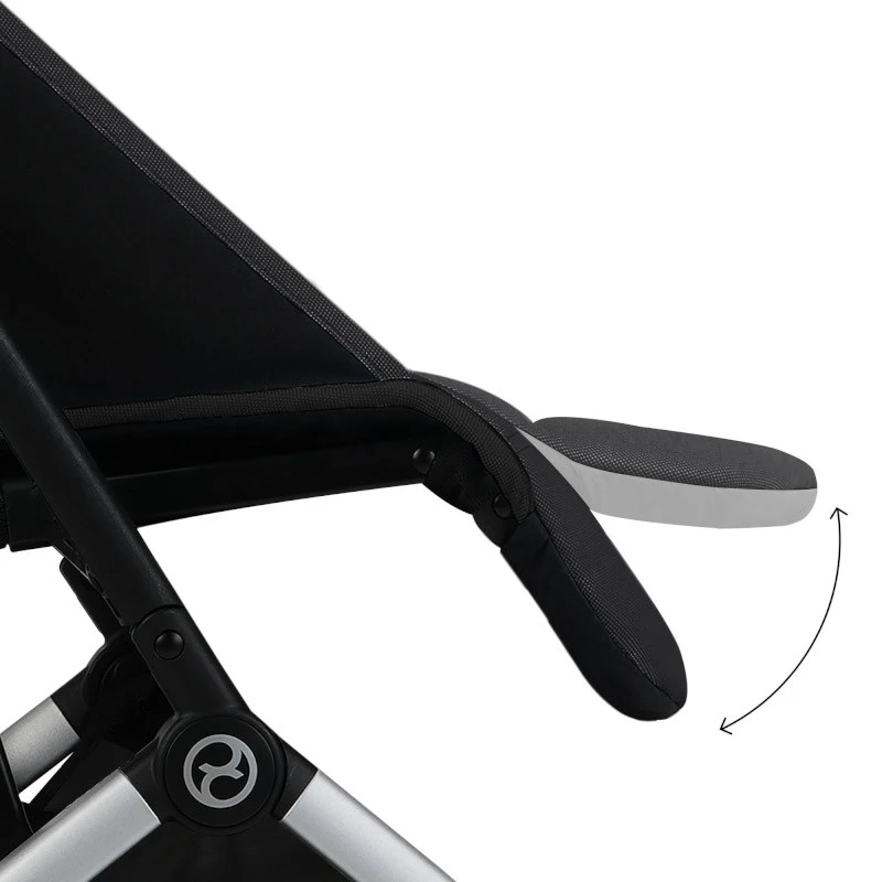 - Soit en complétant la poussette par un siège-auto 1er âge Cybex (coque et adaptateurs vendus séparément).