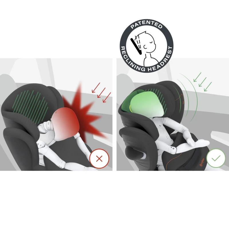 Appui-tête inclinable 3 positions : système unique qui déplace en toute sécurité le centre de gravité de la tête de l’enfant et l’empêche de tomber en avant lorsqu’il s’endort. En cas d’impact latéral, la tête de votre enfant reste à l’intérieur de la zone de sécurité du siège, pour une protection optimale. En outre, cet appui-tête breveté procure à l’enfant une position plus confortable pendant son sommeil, pour un voyage sûr et paisible.