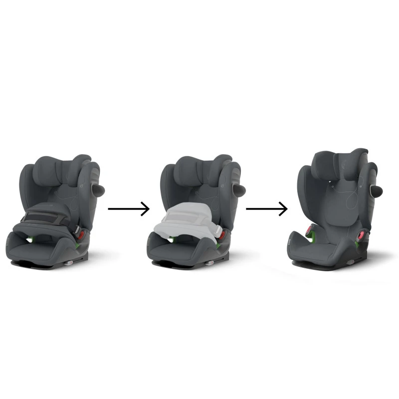 Par la suite, une simple manipulation permet de transformer le siège auto Pallas G i-Size Cybex en rehausseur pour une utilisation en mode jusqu’à 150 cm (environ 12 ans).