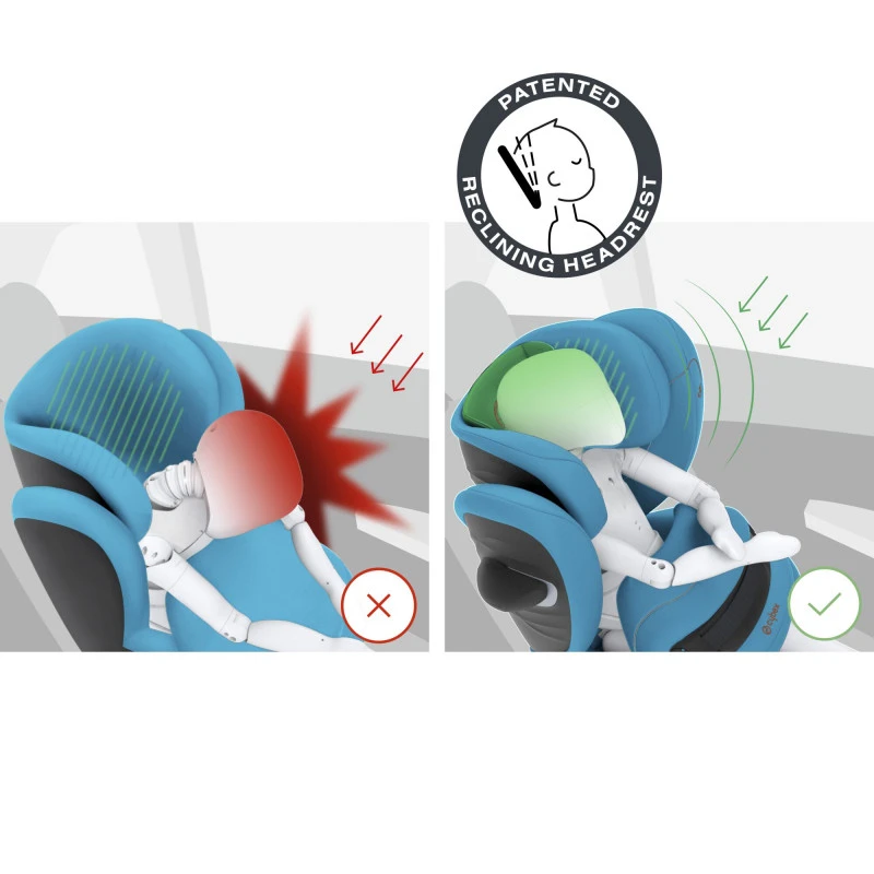 Appui-tête inclinable 3 positions : système unique qui déplace en toute sécurité le centre de gravité de la tête de l’enfant et l’empêche de tomber en avant lorsqu’il s’endort. En cas d’impact latéral, la tête de votre enfant reste à l’intérieur de la zone de sécurité du siège, pour une protection optimale. En outre, cet appui-tête breveté procure à l’enfant une position plus confortable pendant son sommeil, pour un voyage sûr et paisible.