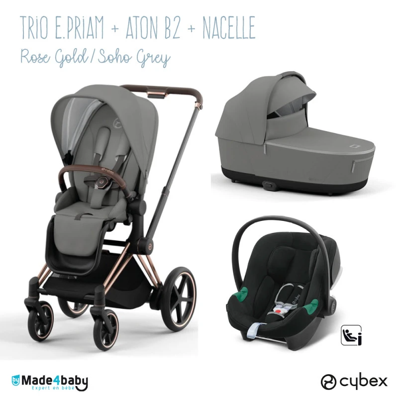 Trio Poussette EPriam 2 + Nacelle + Aton B2 CYBEX Rosegold/Soho Grey – Volcano
