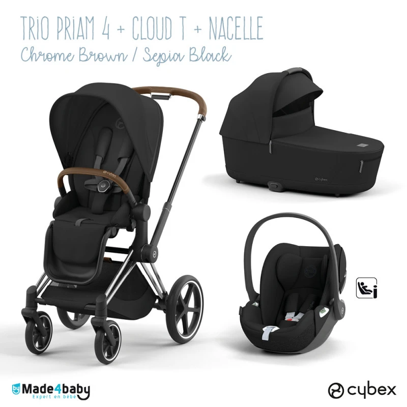 Nous vous proposons cet ensemble Cybex trio composé du châssis Priam, de l’armature d’assise, de l’habillage du siège,du siège auto Cloud T et la nacelle Luxe, un carrosse 5 étoiles pour bébé !